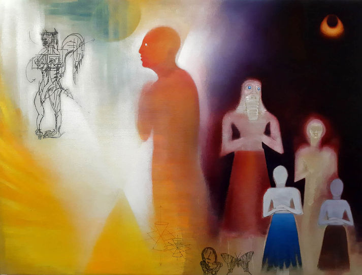 Le ultime ricerche, invece, riguardano un ritorno alla dimensione tradizionale della pittura: nella serie ESSERECONTINUOPRESENTE, viene evocata una dimensione “estesa” del tempo e dello spazio, sospesa ed onirica. E’ evidente un allontanamento del punto di vista ravvicinato sul proprio tempo e sul proprio contesto per elaborare una “mitologia sacra” in cui microcosmo e macrocosmo, elementi del presente, passato e futuro si uniscono mischiandosi tra di loro per raccontare quelle tematiche antropologiche da sempre alla base del suo lavoro.